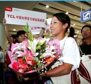 郑洁手捧鲜花